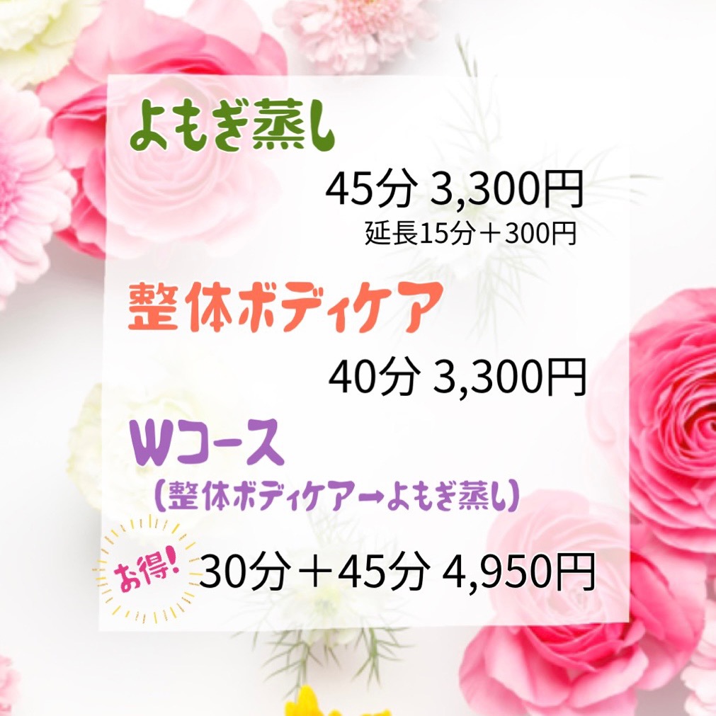 整体ボディケアの内容をリニューアルしましたので、内容や価格等をお知らせします📢
