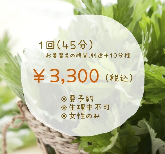 よもぎ蒸しは美容健康メニューです。
